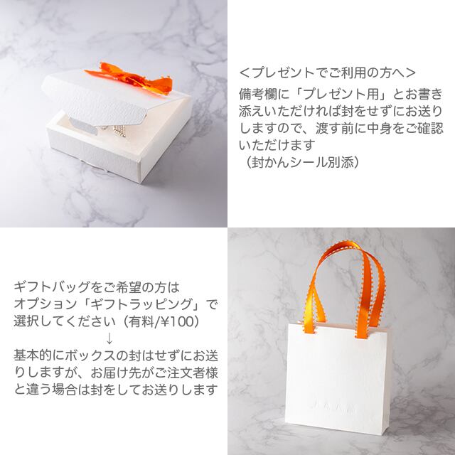 ※ボックスに入れてお届けします。ギフトバッグをご希望の方はオプションで選択してください。