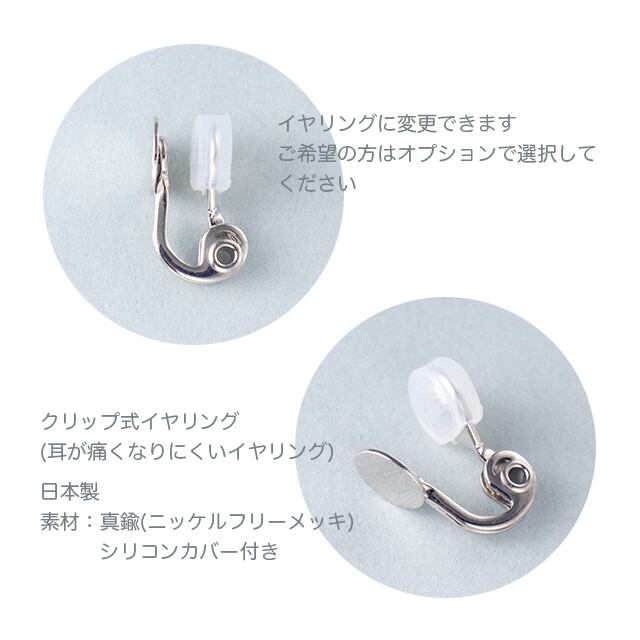 イヤリングへの変更をご希望の方はオプション「金具変更」でご指定ください。