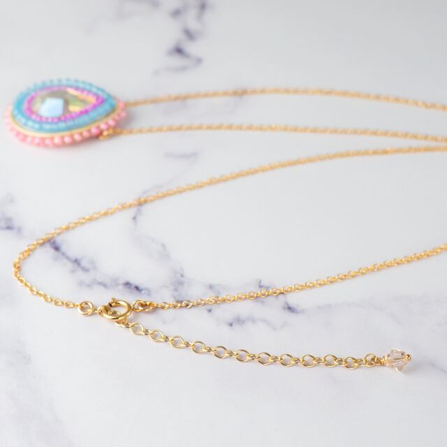 ネックレスの長さは約43cm+アジャスター5cm、チャームのボリューム感に合わせてやや長めにしました。