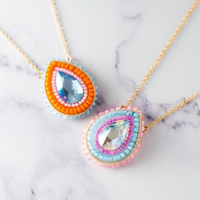 ブローチでお洋服に穴を開けたくない時や位置を考えずにさっとつけられるネックレスは、やっぱり重宝します。