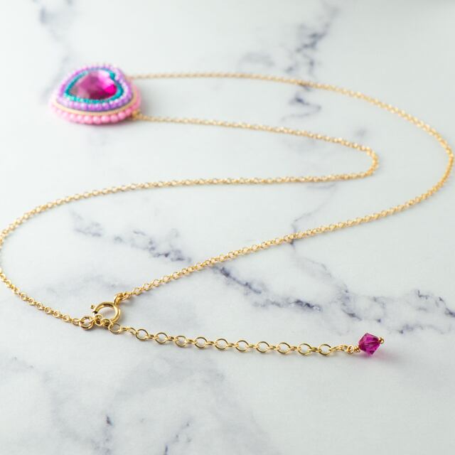 ネックレスの長さは約43cm+アジャスター5cm、チャームのボリューム感に合わせてやや長めにしました。