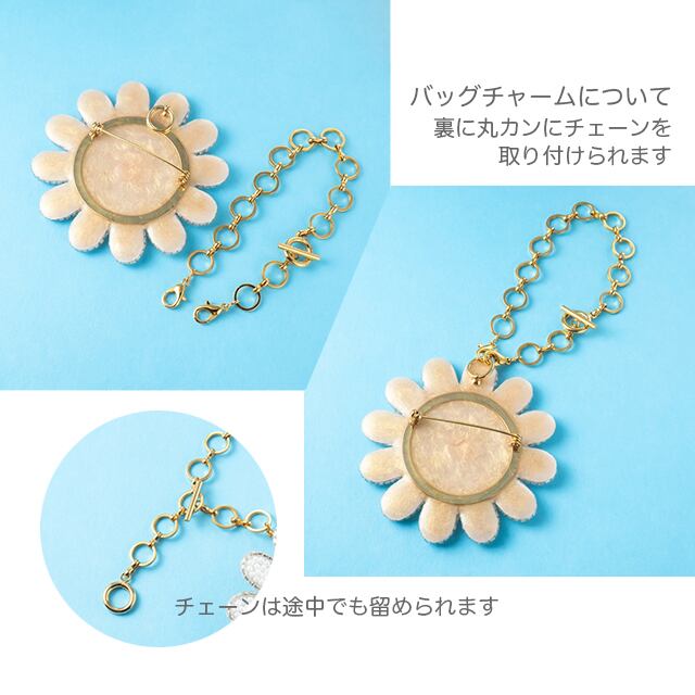 バッグチャーム用のチェーンには質の良い16金メッキが施されています。