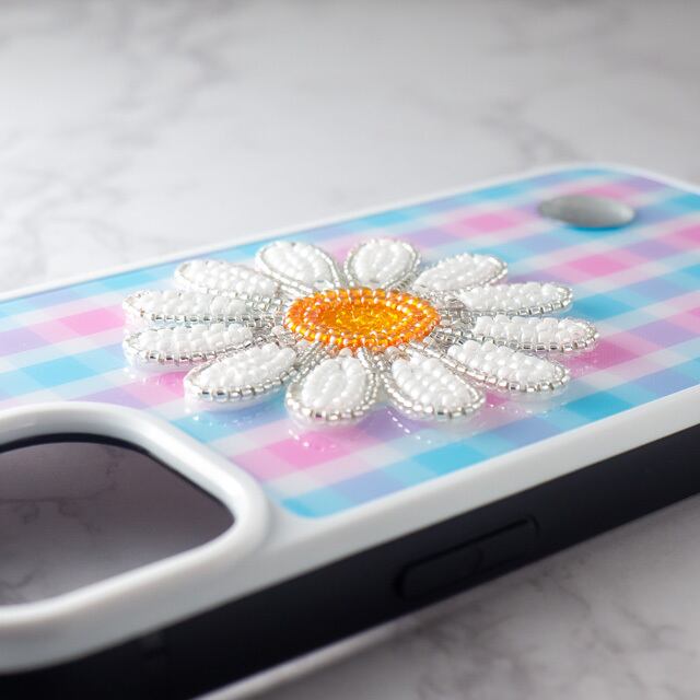 *機種によりビーズ刺繍モチーフの大きさやケースとのバランス、幾何学模様の配置は異なります。画像はiPhone15です。
